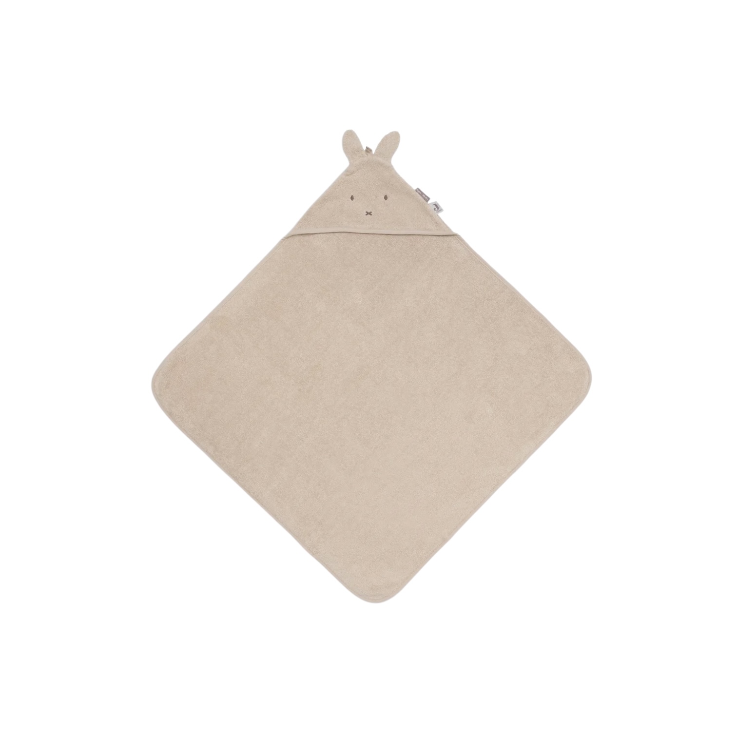 Купальна накидка Jollein Terry 75×75 Miffy Warm Sand з великим зображенням Miffy на капюшоні й у теплому відтінку Warm Sand прекрасно поєднується з іншими товарами цієї лінійки. Вона підходить для немовлят і малюків: капюшон надійно закриває голівку, а достатній розмір дозволяє повністю закутати дитину після купання; махрову тканину можна прати в машинці при 40°С, за потреби використовувати сушарку на низьких обертах, зберігаючи м’якість.