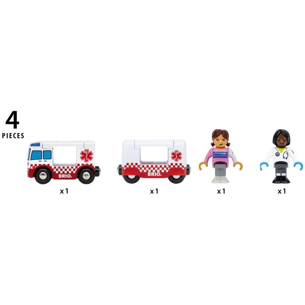 Швидко добирайтеся до місця події на борту Машини швидкої допомоги для залізниці BRIO (36035) зі світлом та звуком.