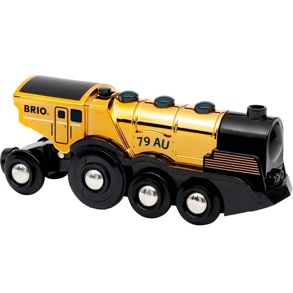 Могутній золотий локомотив для залізниці BRIO на батарейках