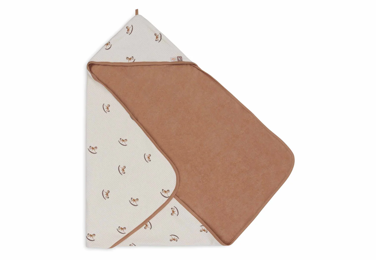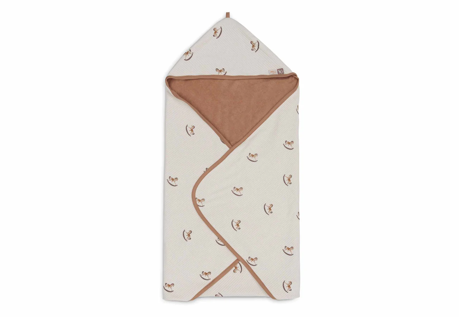 Купальна накидка Jollein 75×75 Nostalgic Ride без махри (звичайний текстиль або тонший рушниковий матеріал) з принтом у вінтажному транспортному стилі підходить для легкого накривання малюка після літнього душу чи купання в теплій воді. Вона більш легка й швидко висихає, її зручно брати з собою в подорож чи на пляж; догляд простий — машинне прання при 30–40°С з м’яким засобом, сушіння на повітрі, при цьому принт зберігає яскравість.