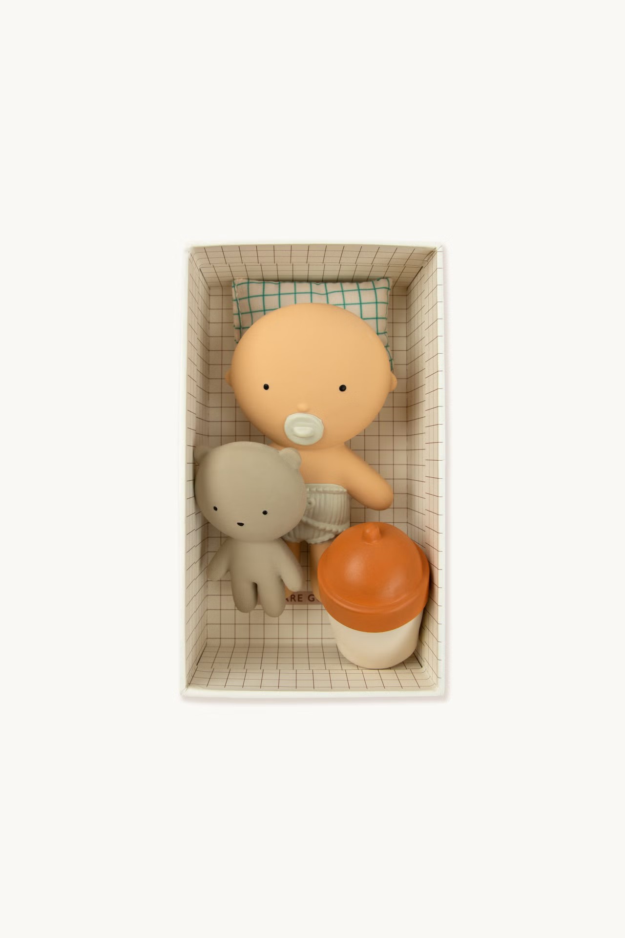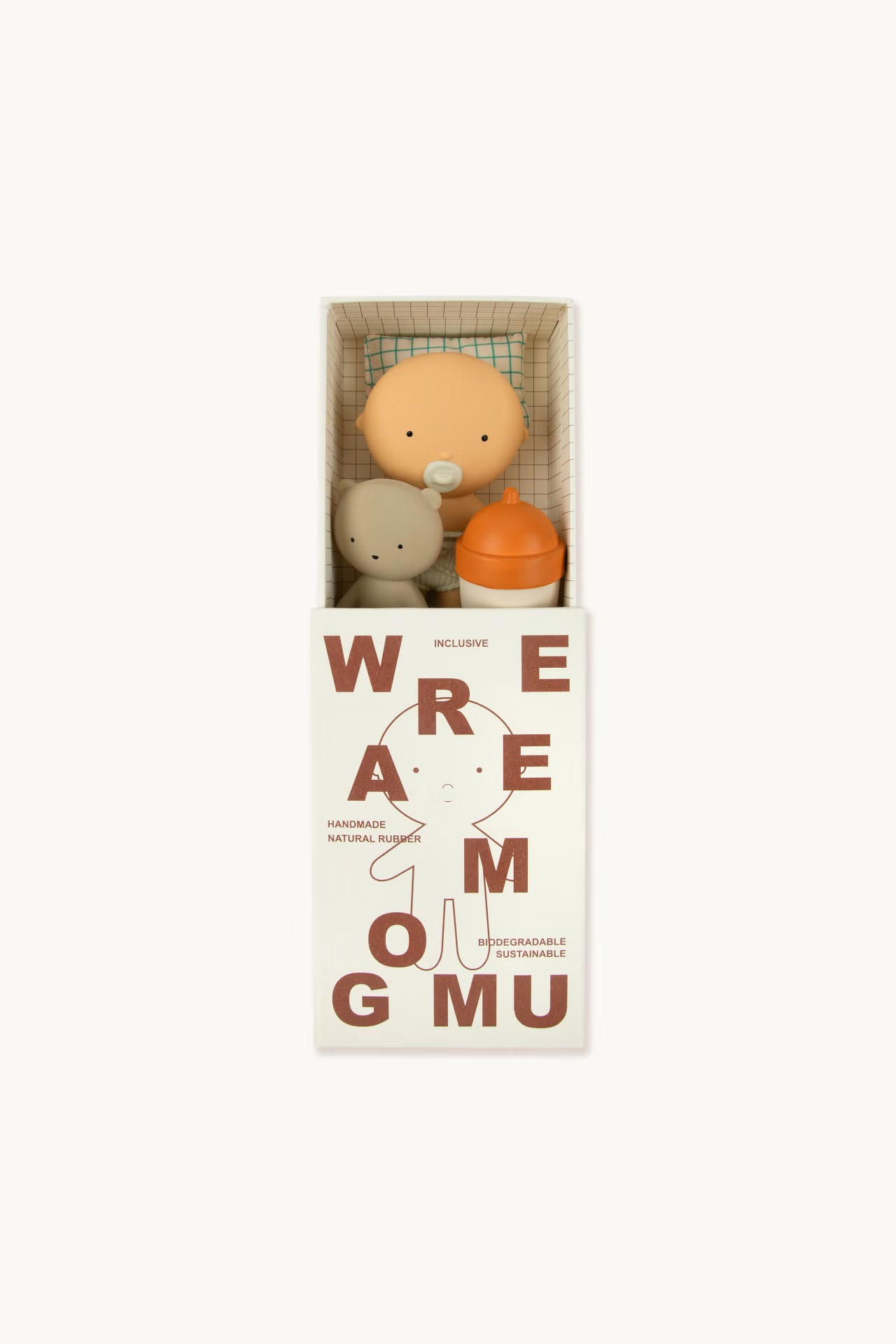 Ігровий набір GOMMU POCKET — це компактний еко-світ для розвитку дитини, до якого входить мініатюрний пупс (10 см), крихітний ведмедик та пляшечка, виготовлені вручну зі 100% натурального каучуку гевеї.
