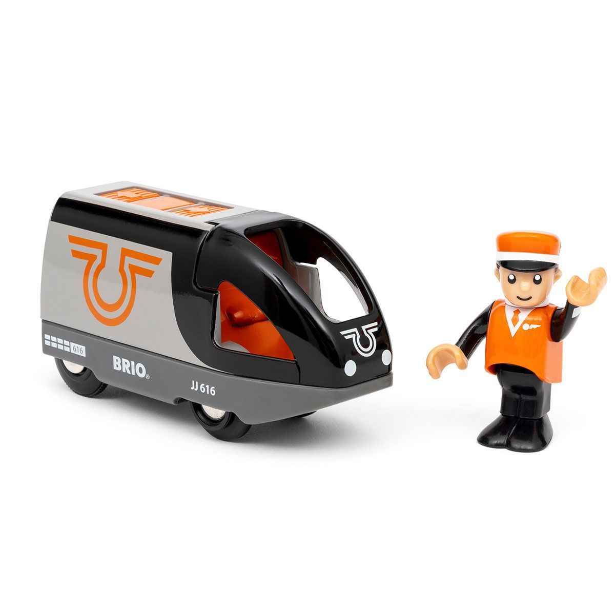 Подорожуйте залізницею BRIO з сучасним пасажирським поїздом на батарейках! Поїзд Travel Battery Train має стильний дизайн у чорному та помаранчевому кольорах і керується за допомогою кнопок на даху. Рух вперед, назад або зупинка — усе просто та зручно для дітей від 3 років.